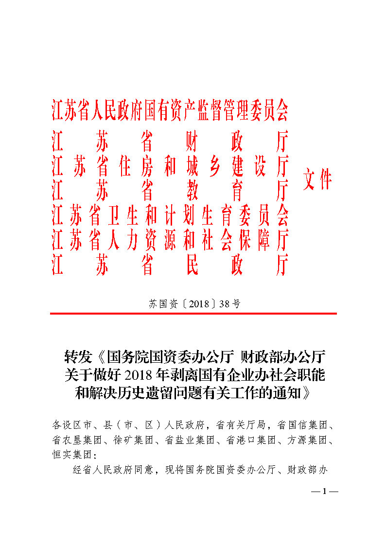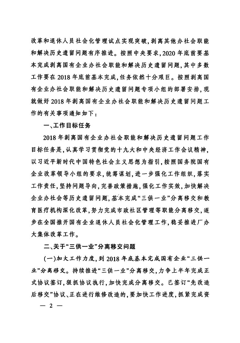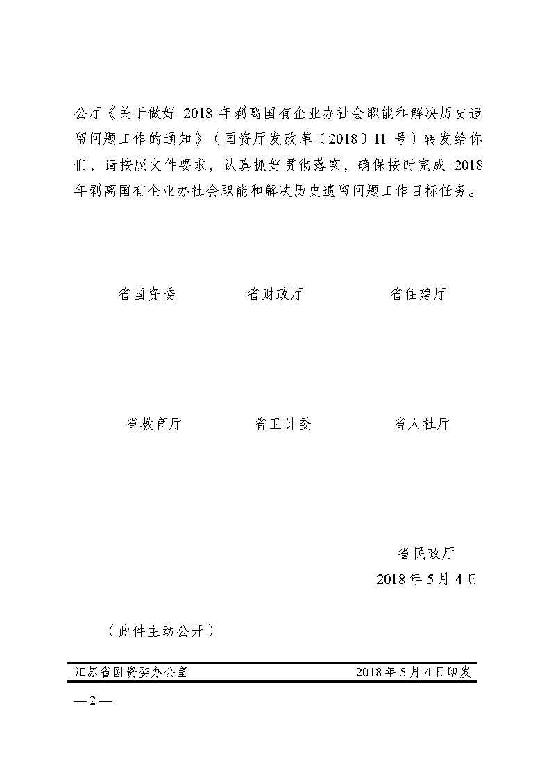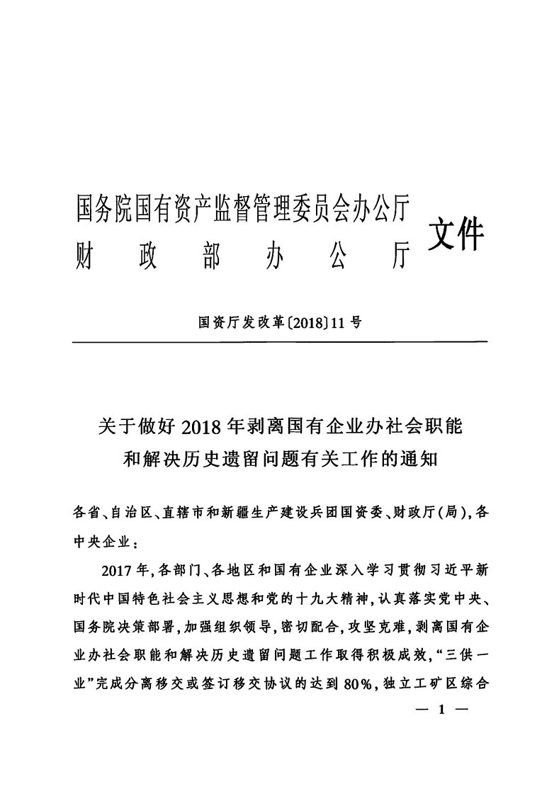 转发《国务院国资委办公厅 财政部办公厅关于做好2018年剥离国有企业办社会职能和解决历史遗留问题有》