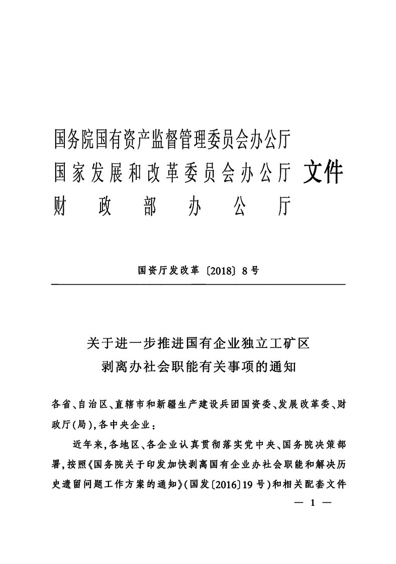 转发《国务院国资委办公厅__国家发改委办公厅__财政部办公厅关于进一步推进国有企业独立工矿区剥离办社