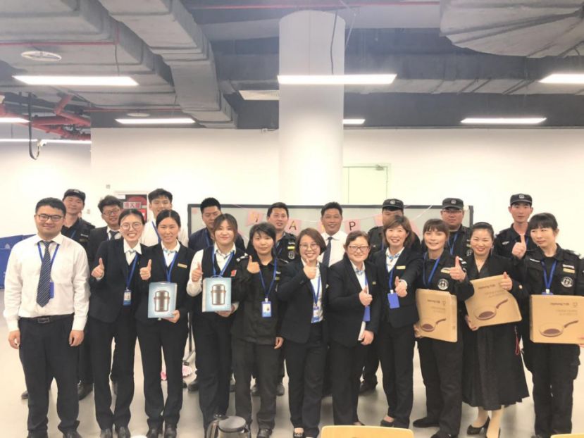 第三个环节为问题抢答环节,各组通过戳爆气球的速度来确定抢答问题资格,问题均为公司或日常工作中所需掌握的知识,如:中航物业的服务宗旨是什么?本岗位的岗位职责是什么?员工规范的仪容仪表是指哪些等问题。比赛开始后,各组队员纷纷抢答,气球被戳爆的声音如鞭炮般不绝于耳,寿星们对各项知识了如指掌,对答如流,通过本轮游戏将工作内容融入游戏,让公司企业文化及相关标准、规定更深入人心。当最后一个问题抢答完成后,主持人快速地统计各队积分,并宣布获奖名次,由项目总经理为寿星颁发奖品。寿星们收到各自的礼物后,脸上流露出开心的笑容。