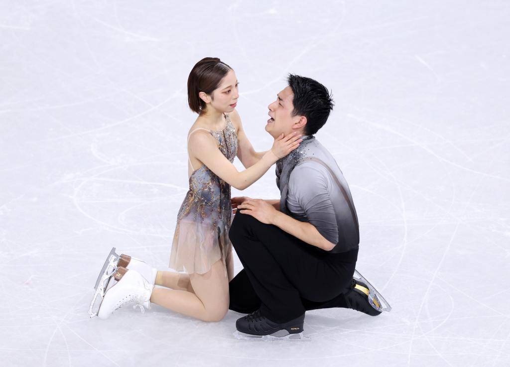 2月16日,日本组合三(san)浦璃来(左)/木原龙一在双人滑自由滑完赛后。新华社记者 陈益宸(chen) 摄