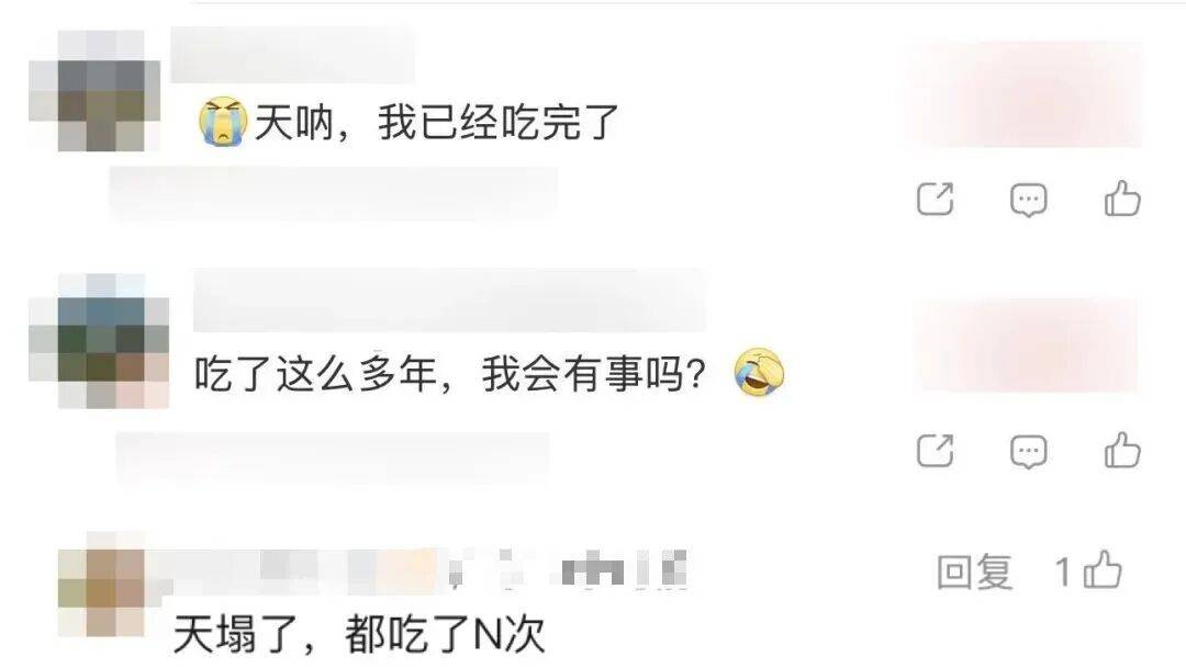 社交平台(tai)上,有网友表示“吃了(le)这么多年,我(wo)会有事(shi)吗?”“天塌了(le),都(dou)吃了(le)N次”。
