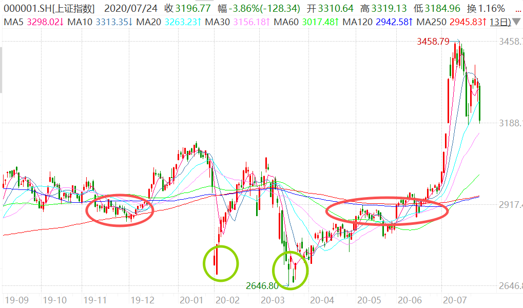 启动(dong)前大概是(shi)1200点,行情(qing)竣事后,也差不多是(shi)回调(diao)到1200点高(gao)低才止跌,时代一(yi)度跌破半年线和年线。