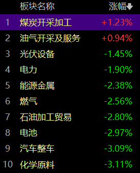 只有煤炭和油气是(shi)红的(de),其他板块全绿,普遍跌了4%+。