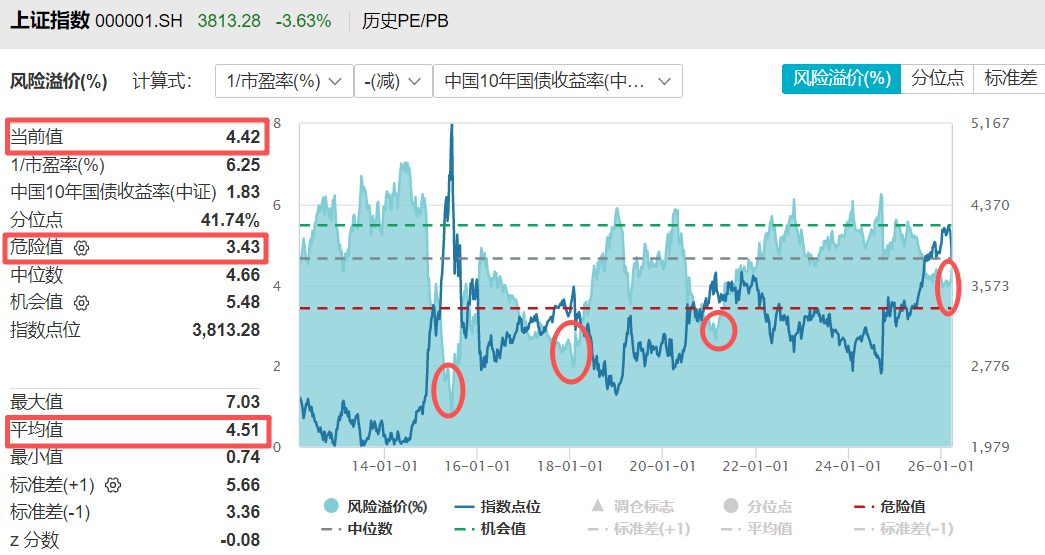 这(zhe)一(yi)轮,由于(yu)国债收益率大幅下落,行情(qing)虽然涨到4000点上方,但“股债性价比”其实(shi)也就是(shi)低于(yu)过去十几(ji)年的(de)平均值罢(ba)了,离“风(feng)险值”另有一(yi)定距(ju)离。