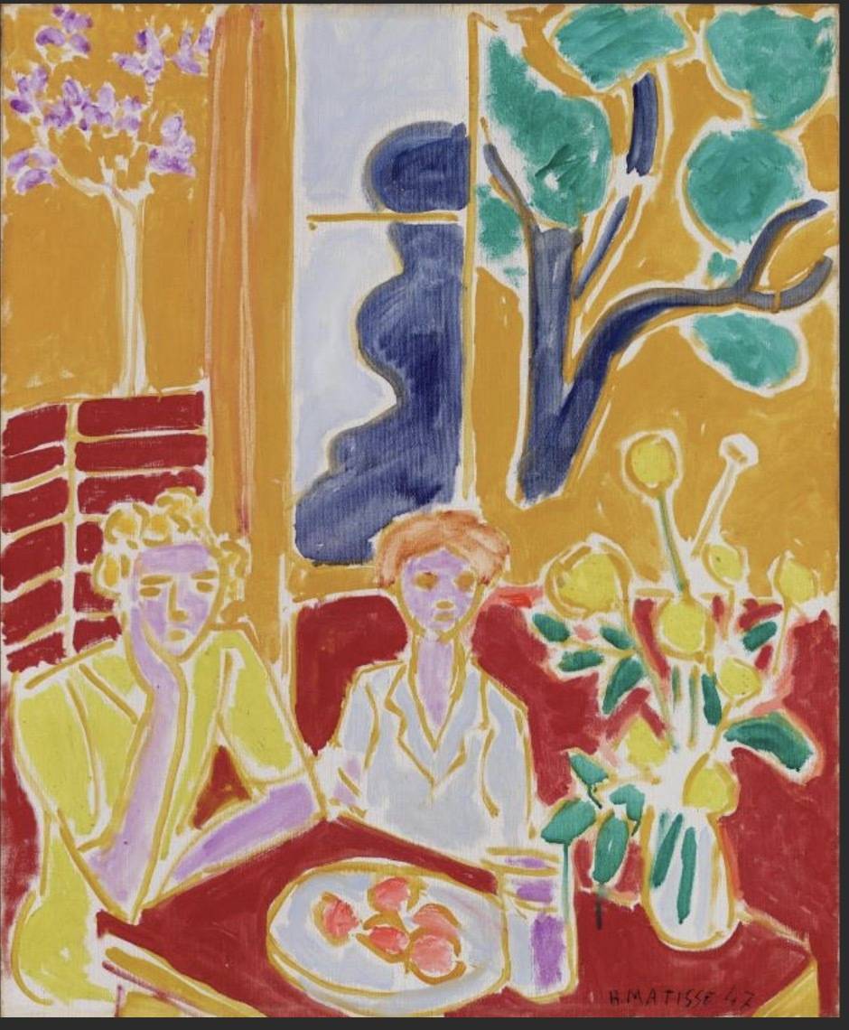 马蒂斯,《两个小女孩(黄与(yu)红(hong)背(bei)景(jing))》,1947年(nian)