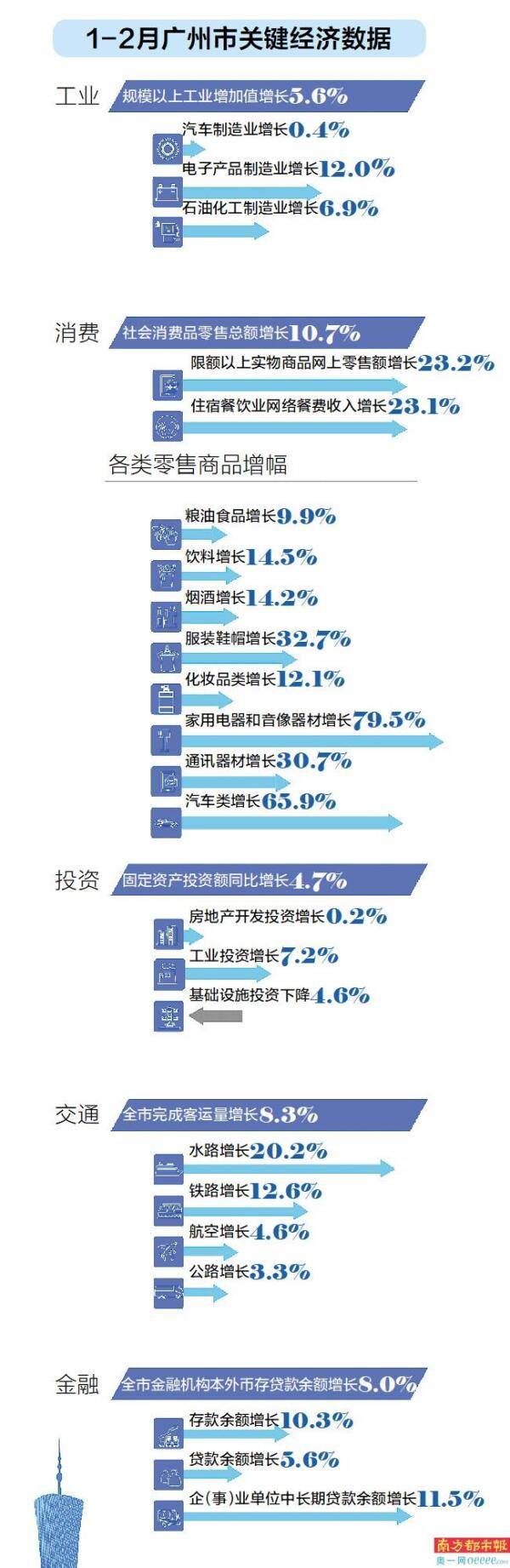 在(zai)去(qu)年的广州经济数(shu)据中(zhong),汽车制(zhi)造、地产投资(zi)、固定资(zi)产投资(zi)这(zhe)三项关键数(shu)据未能实现(xian)同比增长(chang),影响了全年经济增速的表现(xian),而在(zai)市统计(ji)局发布(bu)的今年1-2月数(shu)据中(zhong),上述三项关键数(shu)据全部实现(xian)了正增长(chang)。除了弱项补齐之外,1-2月广州还(hai)做到(dao)了强项更强:交通客运量、社会消费品零售、企业(ye)贷款(kuan)等延续了高位增长(chang),展示了今年以来(lai)经济开(kai)局的良(liang)好态势。考虑到(dao)去(qu)年一季度是全年GDP增速的低点,良(liang)好开(kai)局也有望让今年一季度广州GDP增速在(zai)低基(ji)数(shu)的条件下拿出(chu)更好的表现(xian)。