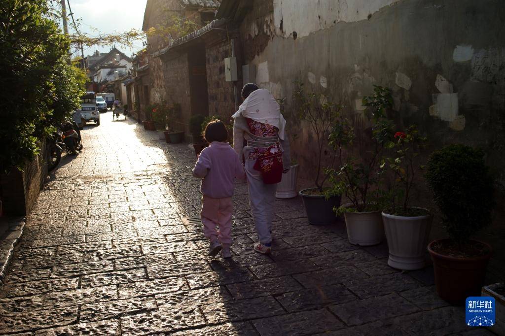 3月25日(ri),居(ju)民走在会泽(ze)古城的街道上(shang)。
