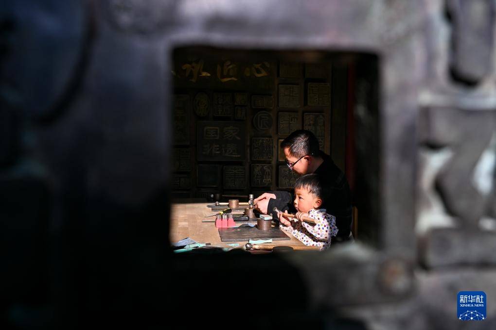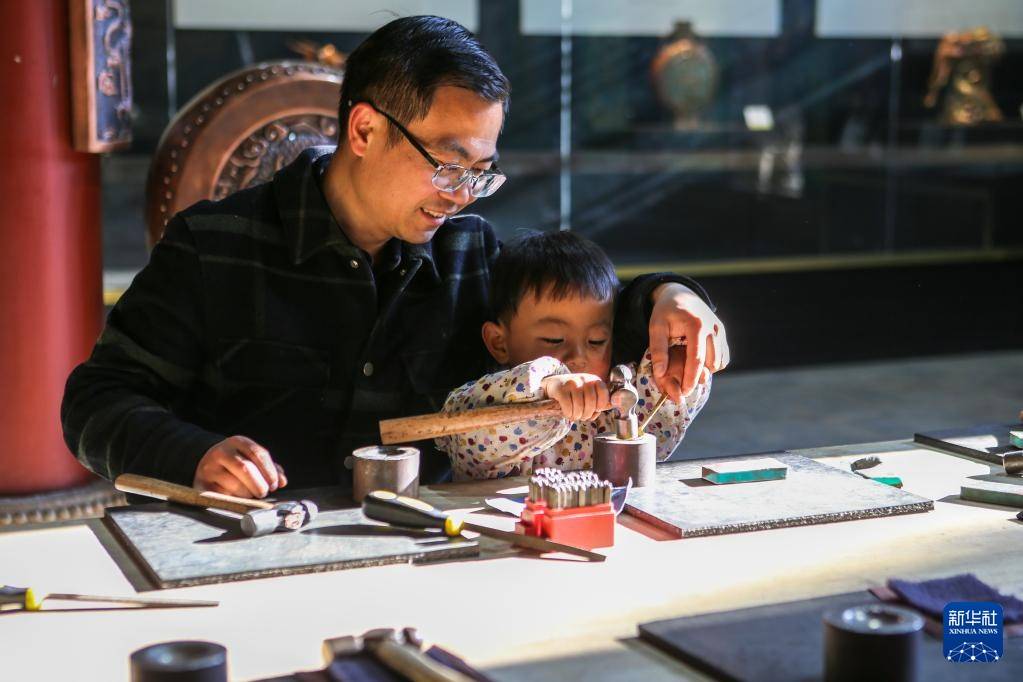 3月25日(ri),在会泽(ze)县(xian)国度级非遗斑(ban)铜制作技(ji)艺传习馆,张氏斑(ban)铜第十三(san)代传人张伟在教(jiao)儿子敲打铜器。传习馆开设在会泽(ze)古城江西会馆内,江西会馆又称万寿宫,始建于清康熙年间。