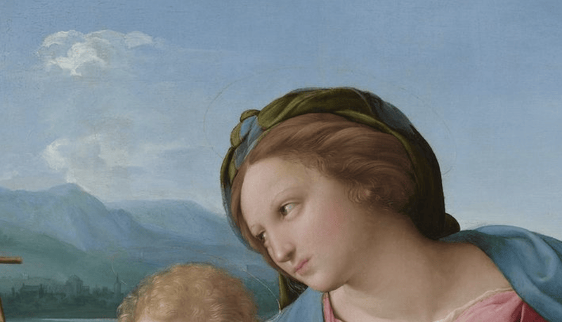 策展(zhan)人(ren)卡门·班巴赫最喜欢的(de)拉斐尔作品是《阿尔瓦(wa)圣母》(The Alba Madonna)。该作品创作于约1510年,在(zai)圆形构图中展(zhan)现(xian)了完美(mei)的(de)几何(he)美(mei)感以及色彩的(de)巧妙平衡。画作中,圣母玛利(li)亚的(de)蓝色大氅及身后的(de)绿色配(pei)景被完美(mei)地融合在(zai)一起。