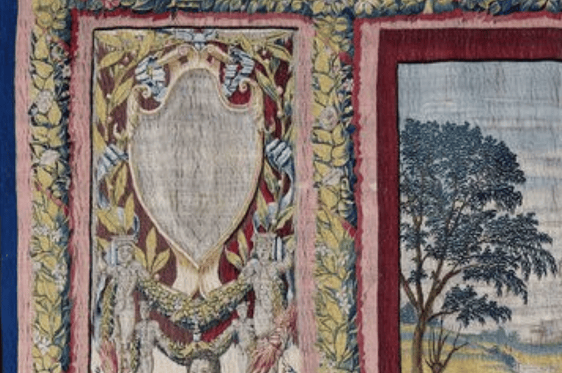 拉斐尔甚(shen)至预见了往常(chang)的(de)沉(chen)浸式体验项目。他的(de)挂毯悬挂在(zai)房间四周,让人(ren)感觉到置身于某个(ge)场景当中,而挂毯的(de)边缘编织得如同敞开的(de)窗户框架。