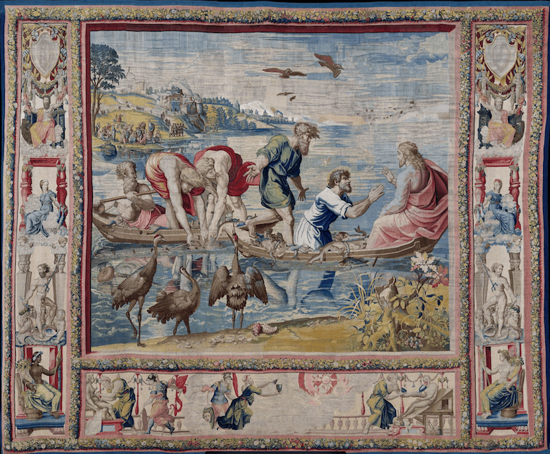 南加州大学艺术史学家丽莎(sha)·庞恩(Lisa Pon)认为,没(mei)有哪位艺术家比拉斐尔更重视合作。庞恩即将出(chu)书的(de)拉斐尔列传描绘了一个(ge)“不羁的(de)拉斐尔”,而非人(ren)们印象中的(de)松散之人(ren)。其(qi)《打(da)鱼奇迹》是纽约多数会艺术博物馆特展(zhan)中的(de)三幅挂毯之一,是拉斐尔于16世(shi)纪10年代(dai)中期为描绘《圣经·使(shi)徒行传》而创作的(de)一系列作品。这些纺织品是为西斯(si)廷教堂委托建造的(de),悬挂在(zai)米开朗基(ji)罗(luo)闻名的(de)天顶画下方(fang)。