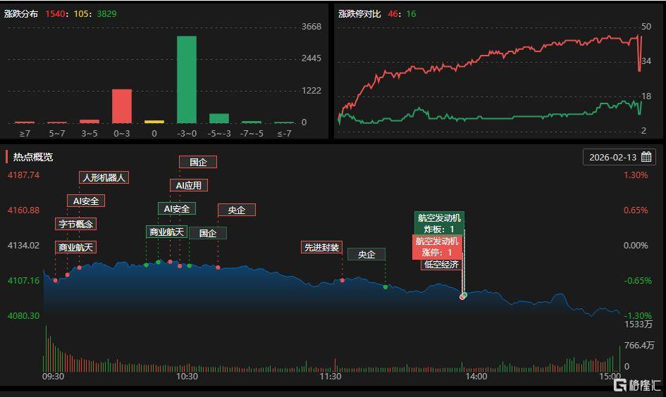 蛇年最后一个(ge)交(jiao)易日,A股三(san)大指数(shu)集体下挫,沪指跌1.26%,深证成指跌1.28%,创业板指跌1.57%。军工装备、影视(shi)院(yuan)线、半(ban)导体板块(kuai)涨(zhang)幅靠前;光伏设(she)备、小金(jin)属、钢铁、港口航运、油气开采及服务板块(kuai)下跌。