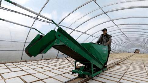 水(shui)稻种植大户邵忠福购买的床土输送机