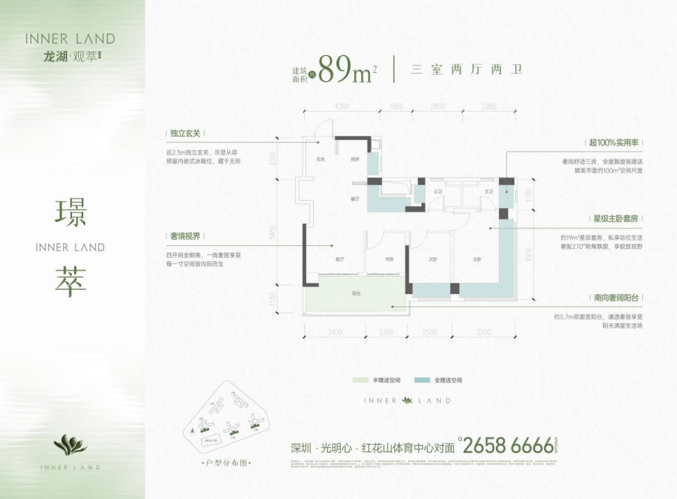 建面约89㎡三房,作为项目最低入门门槛户型,也做到了市道市情少见的四面宽朝(chao)南,搭配约5.7m宽阳台、主卧270°环幕,极致采(cai)光视野(ye)也是让人称赞不已,能够说,无论是尺(chi)度感,还是功能性,都足以窥见龙湖(hu)在本次产物打造上的用心与(yu)诚意。