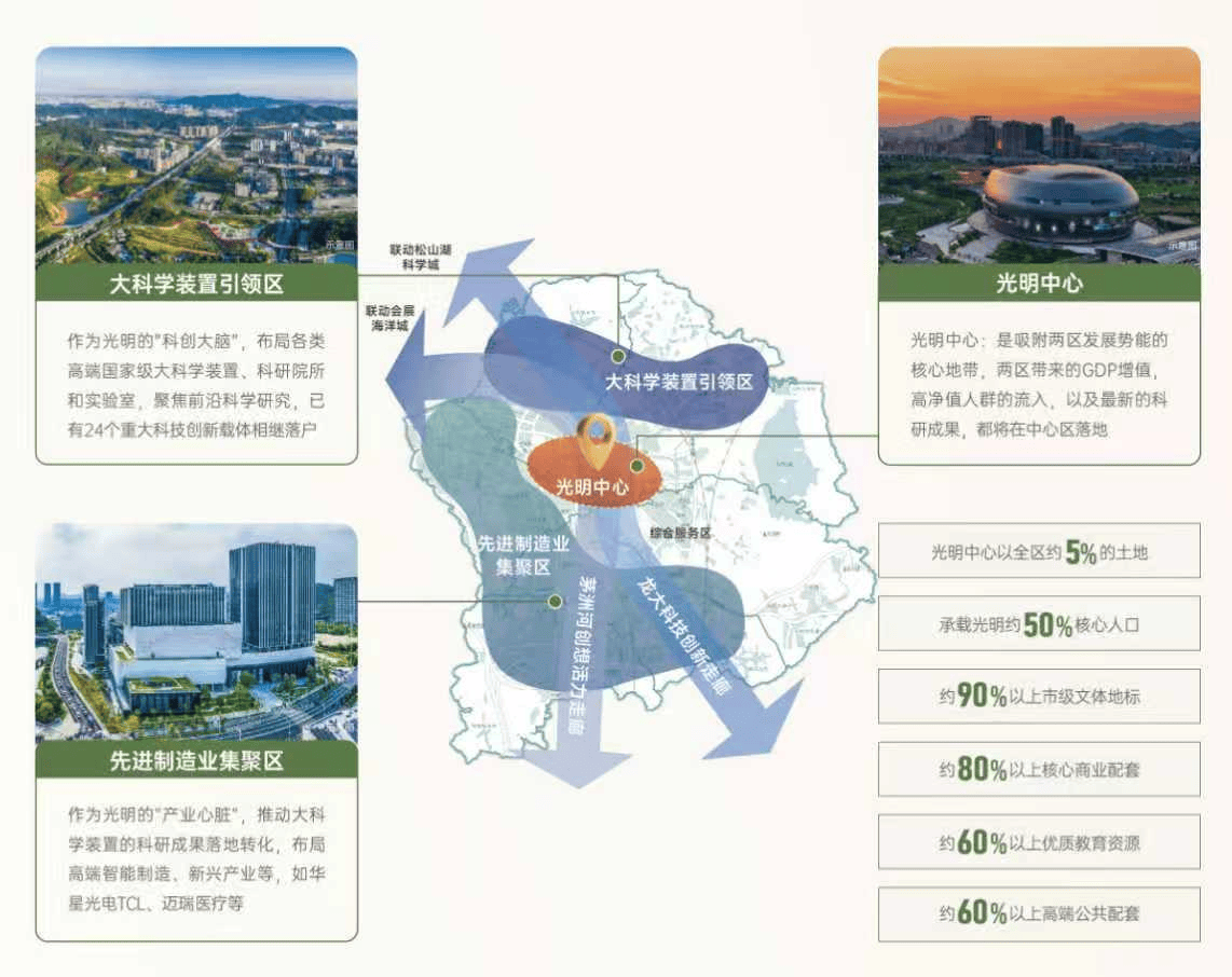 翻开(kai)光明2035的“同心专心两区”计划,大科学装置引领区和先进制造业集聚区,组成(cheng)了这座城(cheng)市腾飞的双翼(yi)。而龙湖(hu)所落子的处所,恰是承接这两翼(yi)全部势能的“心脏”——光明中心。这里用全区仅5%的土地,容纳了约50%的人口,让最顶尖的科研大脑,在最宜居的土地上扎根。