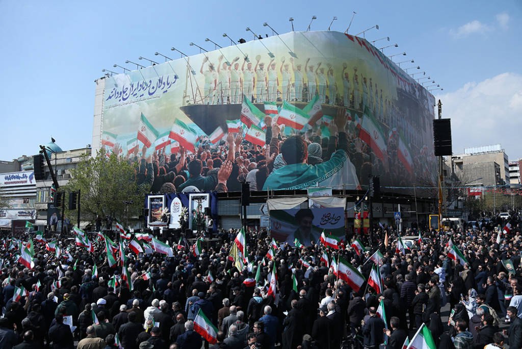 3月18日,伊朗民众在首都德黑兰的革命广场参加葬礼。 新华社 图