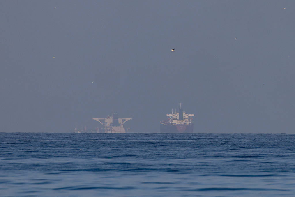 当地(di)时间2026年3月22日,阿拉伯联合(he)酋长国拉斯海玛,霍尔木兹海峡(xia)附近的商业船只。 视觉中国 图