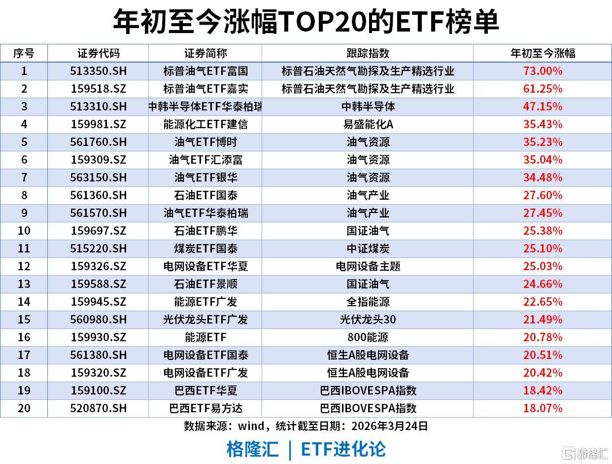 中韩半导体ETF以47.15%的涨幅位(wei)列第三,成为年度成长赛道的领涨品(pin)种(zhong);油气资源、石(shi)油、煤炭、电网设备等能(neng)源链ETF批量收获20%-35%的涨幅,巴西(xi)ETF系列也录(lu)得18%左右的年度涨幅,全球资源品(pin)行情(qing)贯穿全年。