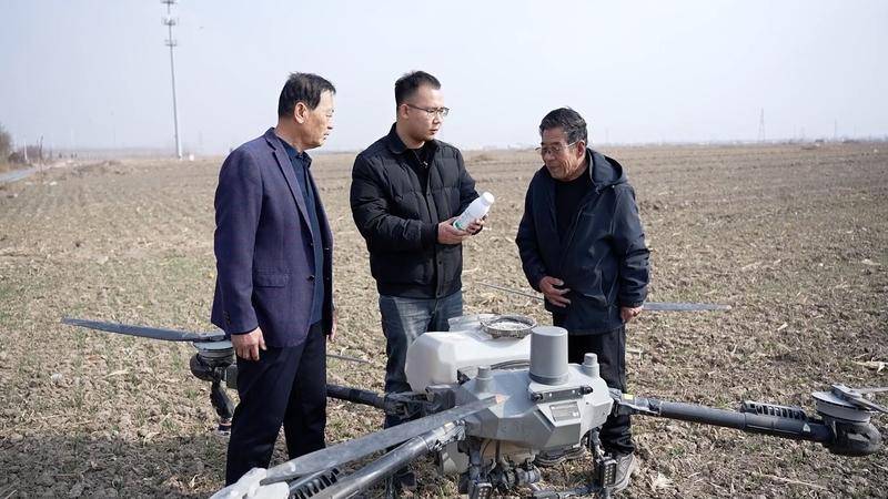 河北(bei)省沧州市孟村回族自(zi)治县的麦田里一片忙碌,大学毕业后返乡(xiang)创业的“95后”新农人耿立宫,正带领着他(ta)的团队忙着追肥飞防(fang)作业。