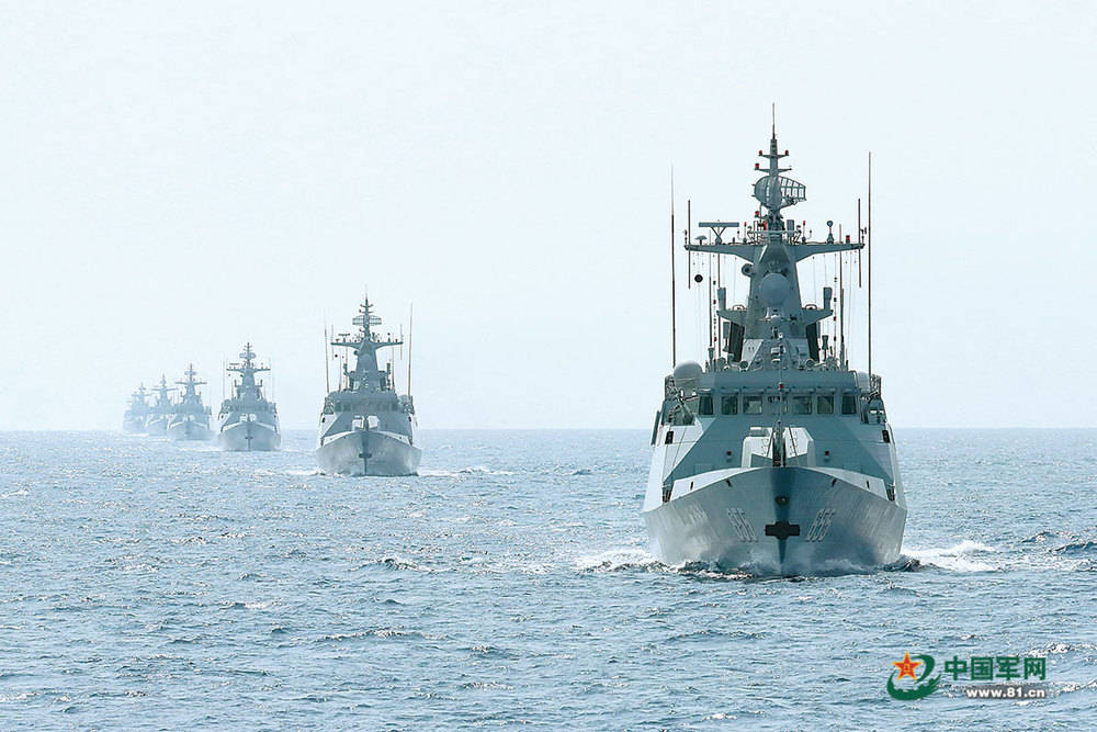 该支队组织舰艇编队训练。(解(jie)放军报特约记者 王光杰 摄)