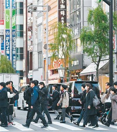 人们从(cong)日本东京(jing)街头走过。