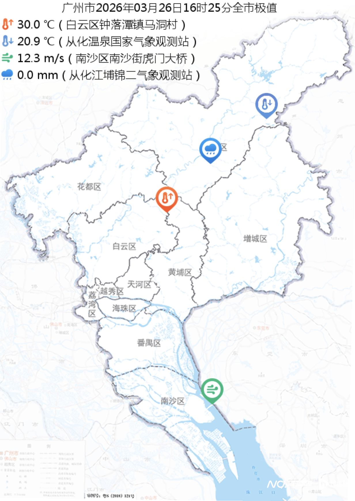 16时许(xu)的广州北郊钟落(luo)潭镇的景象形象观察站录得30℃气温。