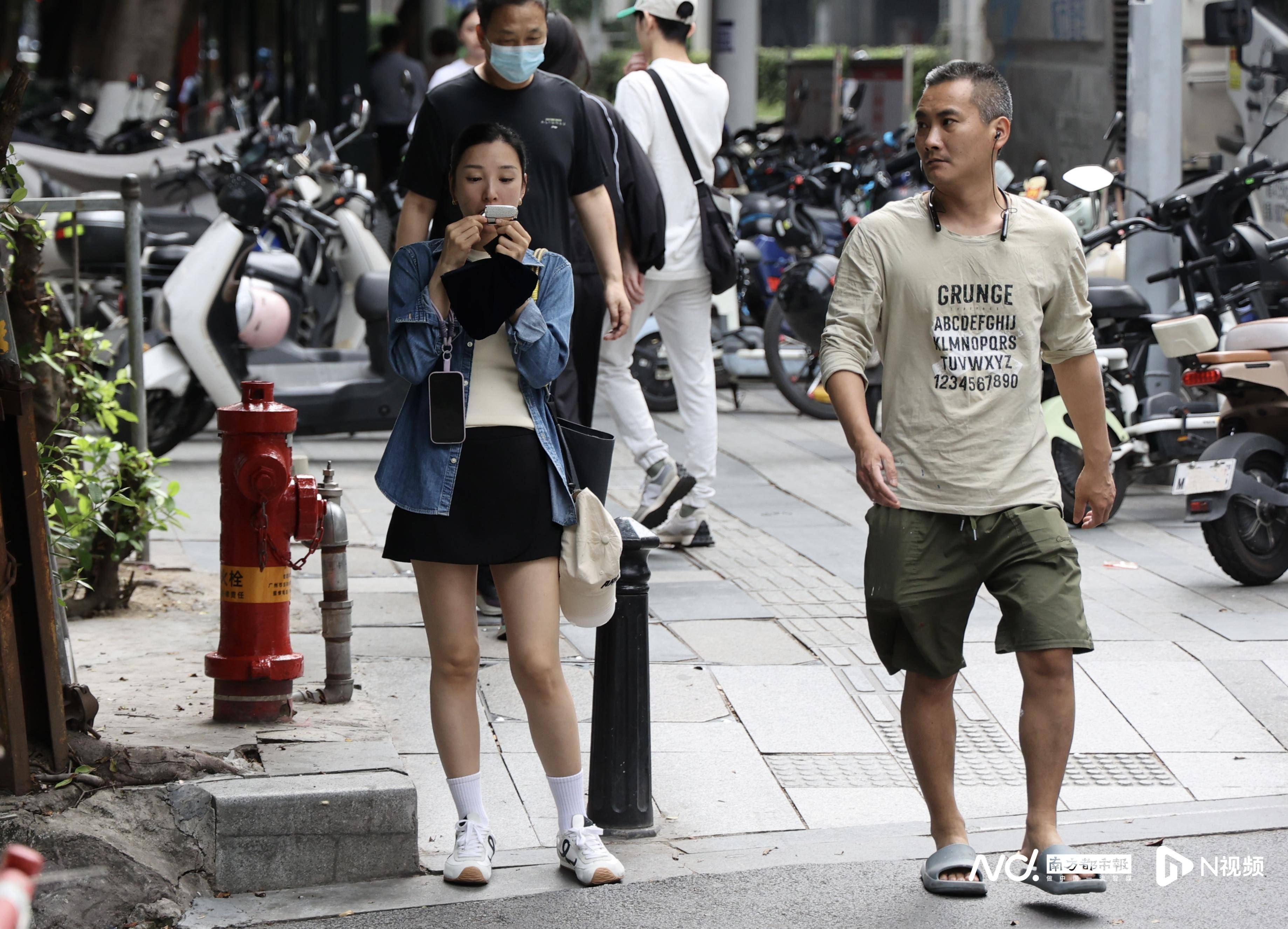 26日下(xia)午,正在广州街头,市民穿搭也已透出炎天色息,大部份以短袖T恤配搭薄质(zhi)长袖衬衫、外套出行。
