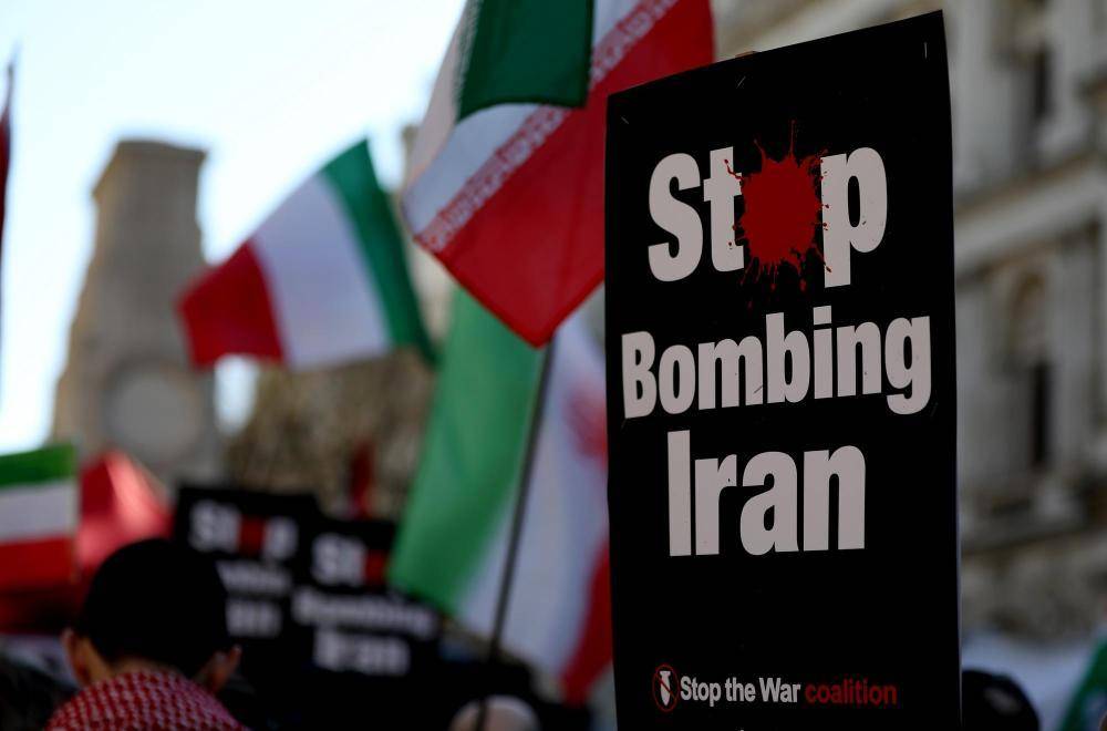 3月21日,人们正在英(ying)国伦敦(dun)参加集会(hui),抗(kang)议美(mei)国和以色列对伊朗动(dong)员军事(shi)袭击。新华社记者李颖摄