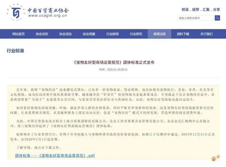 《宠物敌对型阛阓运营规范》更是细化到“骨子里”:设施方面,请求设置物理隔(ge)离的宠物活动区,配备饮水装配、专用洗手间、寄存寄养区及医疗工具箱,提供(gong)宠物推车、牵引绳等租赁办事;安全管理上,限(xian)定入场宠物体(ti)型,请求佩戴牵引绳和(he)嘴套,出(chu)示免疫证(zheng)明,明白禁入敏感地区,并制定辩论处置和(he)伤人(ren)应急流(liu)程(cheng);卫生(sheng)方面,既请求宠物仆人(ren)实时(shi)清算排泄物,也(ye)规定阛阓加强巡检消毒;还对商户管理、人(ren)员培训、活动策划等作出(chu)规范,合规门槛直接拉满。所以说白了,阛阓对宠物敌对政策的调解(jie)本质上是为了合规,更是对所有消费者负责。