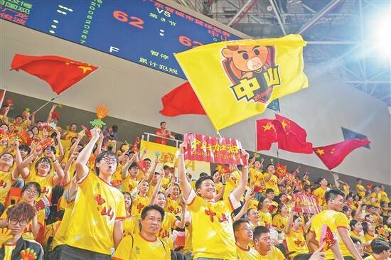 | 21日晚,在2026年(nian)广(guang)东(dong)省城(cheng)市篮球联赛(sai)(粤(yue)BA)揭幕(mu)战(zhan)现场,广(guang)州队与中山队的球迷分别(bie)组成(cheng)红(hong)黄方阵,摇旗呐喊。图为中山队球迷方阵羊(yang)城(cheng)晚报记者 梁(liang)喻 周巍 刘畅 摄 |