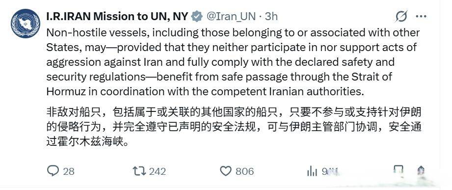 【伊(yi)朗称“除征战(zhan)国,海峡已开放”!“非友好(hao)船(chuan)只(zhi)”可以“正在与伊(yi)朗协调下”通过霍尔木兹(zi)海峡】伊(yi)朗外长(chang)阿拉格齐透露表现,伊(yi)方努力于实现周(zhou)全息(xi)兵而没有仅(jin)仅(jin)是(shi)暂时开火。霍尔木兹(zi)海峡对(dui)所有人开放,船(chuan)只(zhi)可以安(an)全通过,但正正在征战(zhan)的国度(du)没有正在考虑之列。非友好(hao)船(chuan)只(zhi)正在与其协调后可安(an)全通过霍尔木兹(zi)海峡。同时,市(shi)场传出伊(yi)朗向部分商船(chuan)收取最高200万美元通行费的消息(xi),伊(yi)朗驻印使馆予(yu)以否认。
