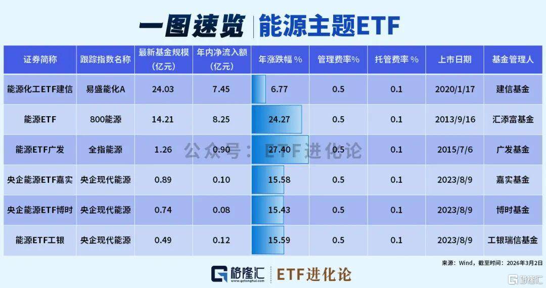 资金同样(yang)青睐(lai)能源主(zhu)题ETF,能源ETF(159930)、能源化工ETF建信(159981)年初至今分(fen)别净流入8.25亿元和(he)7.45亿元。