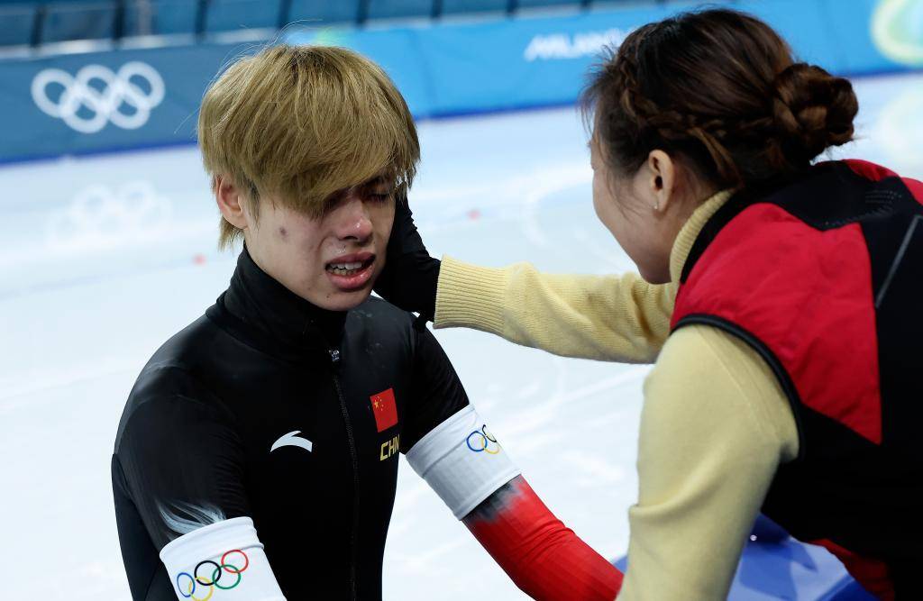 2月17日(ri),我国队选手(shou)刘瀚(han)彬(bin)(左(zuo))与主教练李琰正在赛后。新华社记者 李京 摄