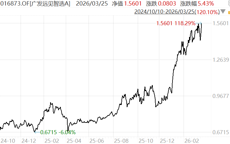 他管的“广发远见智选”是今年的冠军基金,截(jie)至昨天涨了57.38%,也在(zai)昨天创了历史(shi)新高。