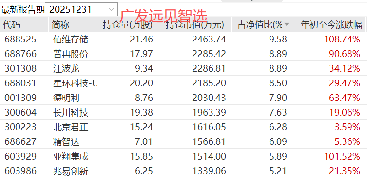 看重(zhong)仓股表现,同期,“广发远见智选”十大重(zhong)仓股平均涨了3.75%,涨幅中位数-0.04%,大幅落后基金净值的表现,也能说明唐晓斌逢高减仓了存储。