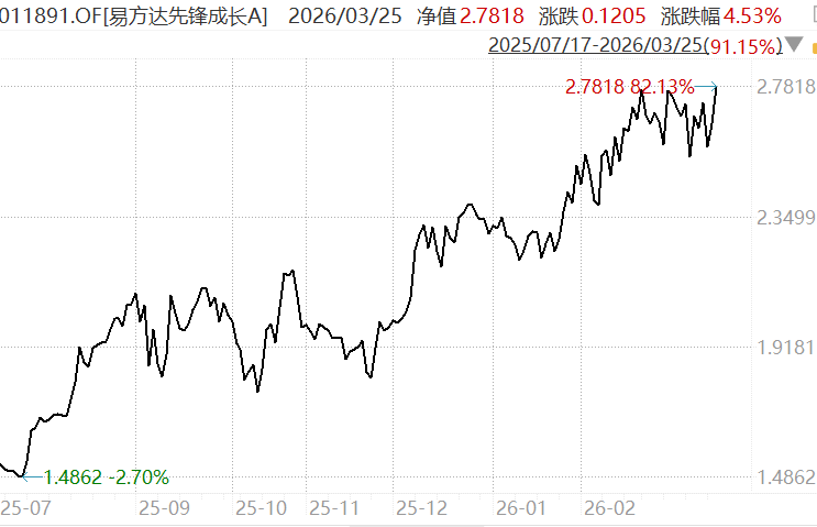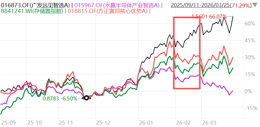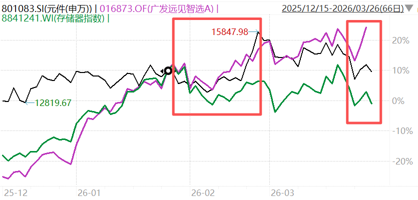 2月3日(ri)到3月2日(ri),“广发远见智选”大涨15.18%,远超同期存储器(qi)指(zhi)数、方正富邦核心优势(shi)(另一只重(zhong)仓存储的基金)1.28%、-1.44%的涨幅。