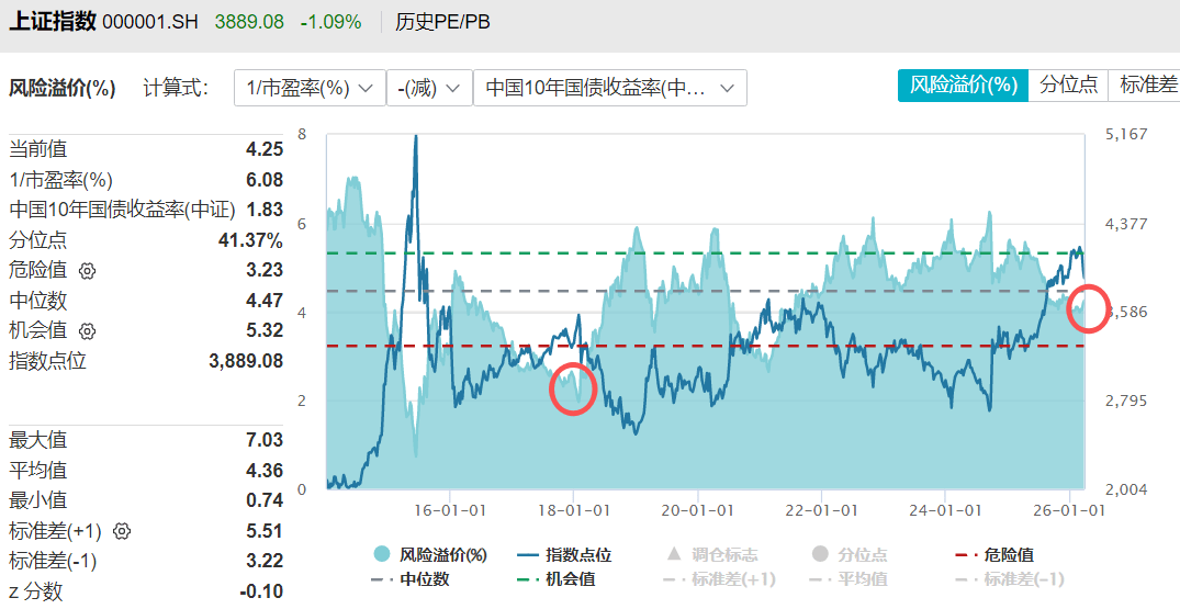 现在(zai)的话,“股债(zhai)性价(jia)比(bi)”低于“平均值”,但还在(zai)“危险(xian)值”上方,股市相对(dui)债(zhai)市的性价(jia)比(bi)虽然不如2020年好,但也明显好于2018年。